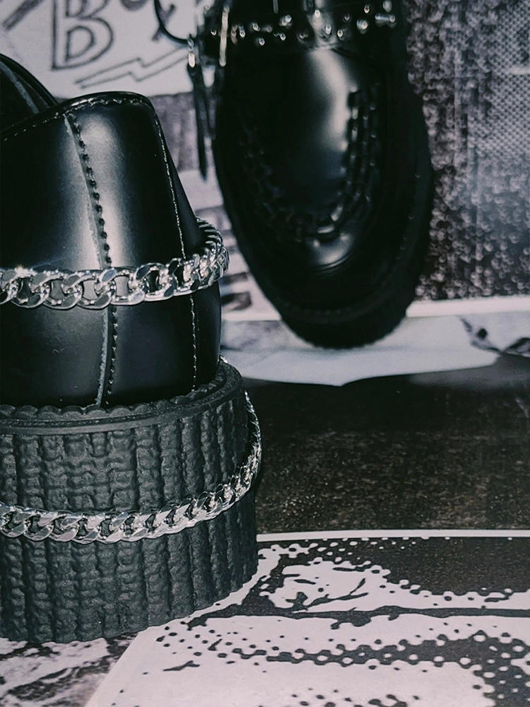 This version of the Wulfrun Creeper is built on our double sole and  features skull buckles, studs and chain detail.